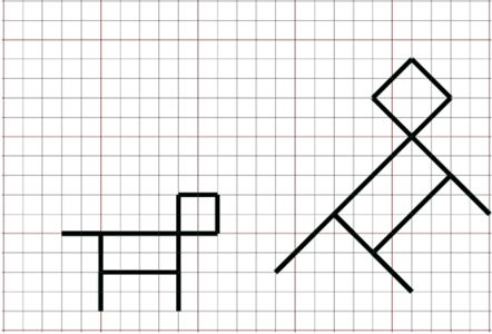 Qui sotto a sinistra è disegnato un gatto. Completa la figura a destra in modo da ottenere un gatto della stessa identica forma.