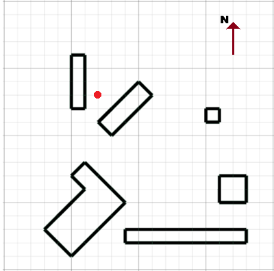 | (1). Una persona si trova nel punto indicato dal pallino rosso e ha il volto diretto verso nord.