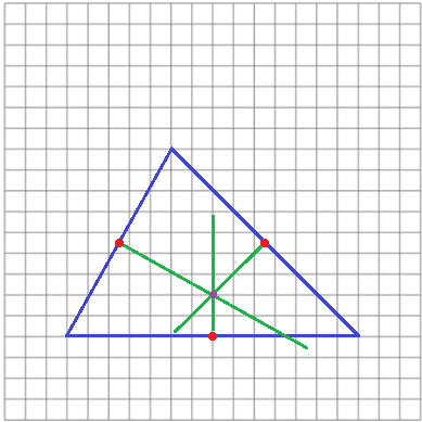 | Traccia le tre perpendicolari innalzate nei punti medi dei lati di questo triangolo, rappresentato a fianco in forma ridotta. Che cosa puoi osservare? |