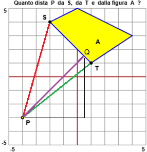 | Quanto vale la distanza dal punto P dal punto S e dal punto T? Quanto vale la dista del punto P dalla figura A? |
