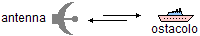 | Un radar è costituito da una antenna, capace di inviare e ricevere "raggi" (o, meglio, onde elettromagnetiche), che ruota su se stessa. Se un raggio inviato incontra un ostacolo, questo lo riflette; l'antenna rileva il raggio riflesso e, in base al tempo trascorso, determina la distanza dell'ostacolo. | ![]() |