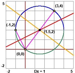 Trova un punto equidistante dai tre punti (0,0), (3,4) e (-1,2).