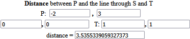La distanza tra P=(-2,3) e W=(1/2,1/2) è √((2+1/2)2+(3-1/2)2)