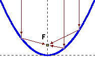 nel fuoco facendoli proseguire parallelamente all'asse di simmetria. Se una parabola ha equazione [Traccia: tieni conto che un raggio verticale che incide la parabola in un punto di pendenza 1 viene riflesso orizzontalmente] | ![]() |