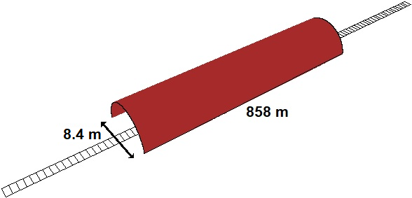 Una galleria, la cui sezione è un semicerchio di diametro 8.4 metri, è lunga 858 metri.
