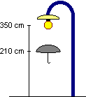 ed è tenuto verticalmente. Il suolo è orizzontale. a) Utilizzando le informazioni della figura a lato, stabilisci che forma e dimensioni ha l'ombra dell'ombrello. Come cambierebbero se l'ombrello non fosse esattamente sotto alla lampada? b) Se ci fosse il sole, l'ombrello fosse tenuto nella stessa posizione e il sole arrivasse con una inclinazione di 60° gradi dal suolo, quale forma e dimensioni avrebbe l'ombra dell'ombrello? |