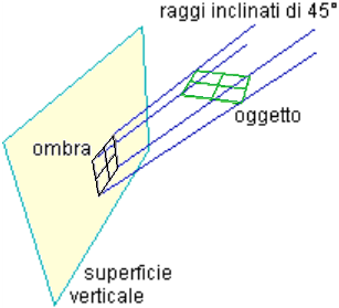 I raggi del sole formano angoli di 45° con tale superficie; la disposizione è tale che l'ombra ha la stessa forma della struttura. ![]() | ![]() |