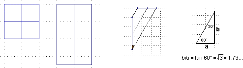 • Nel caso in cui i raggi del sole formino angoli di 30° l'ombra è allungata rispetto al reticolato di un fattore pari a tan 60° = √3; anche senza usare funzioni trigonometriche si poteva arrivare a questa conclusione applicando il teorema di Pitagora al triangolo rettangolo con angoli di 60 e 30 gradi e osservando che (essendo questo metà di un triangolo equilatero) il suo cateto minore è metà dell'ipotenusa: se a è lungo 1, l'ipotenusa è lunga 2 e, quindi, b è lungo √(2² − 1²) = √3.
