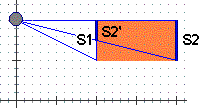 | Come vede gli spigoli superiori della faccia anteriore e della faccia posteriore? La faccia posteriore è a distanza doppia, qundi il nostro uomo vede i sui spigoli lunghi la metà rispetto a come vede quelli della faccia anteriore (vedi figura a lato, in cui si vede dall'alto la scena: lo spigolo S2 viene visto come se fosse S2' collocato alla stessa distanza di S1; e S2' è la metà di S2, e di S1, in quanto lato corrispondente di un triangolo ridotto con fattore di scala 1/2). La risposta OK è (C). | ![]() |