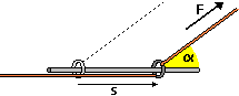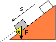 2) La forza peso F fa scivolare lungo un piano di inclinazione α con attrito trascurabile un oggetto per uno spostamento s.