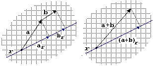 Infatti (vedi fig. sopra a destra) la componenti lungo una retta della somma di due vettori è pari alla somma delle componenti lungo la stessa retta, per cui (indicando con vx e vy le componenti lungo gli assi del vettore v e con vx e vx le loro intensità), abbiamo: