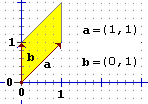 | Se scambio i due vettori l'"area" cambia segno: scambiando due righe o due colonne il determinante cambia segno. Se addiziono un vettore all'altro l'area (vedi figura a lato) non cambia: sommando una riga o una colonna a un'altra il determinante non cambia. | ![]() |