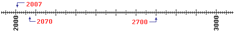 Segna sul tratto di linea dei numeri seguente dove stanno 2700, 2070 e 2007.