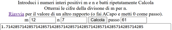 Il numero è comunque irrazionale in quanto i numeri razionali sono periodici poiché nella divisione tra due numeri interi M e N prima o poi si arriva ad una situazione in cui i resti (al più N) si ripetono in uno stesso ordine, senza fine. Ad esempio, 12/7 =