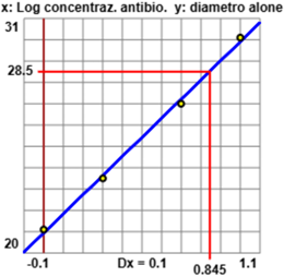 Sappiamo che il diametro cresce grosso modo linearmente col logaritmo della concentrazione di antibiotico.