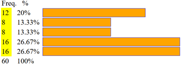 Le ultime 4 colonne corrispondono quindi alle frequenza percentuale: 13.333