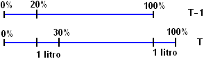 | Attenzione: 20% è riferito al contenuto inziale del bidone, 30% a quello finale. Non è facile rispondere mentalmente: conviene impostare un'equazione che abbia come incongnita il contenuto finale in litri, T, del bidone. Ad es.: | ![]() |