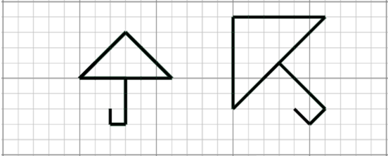 | A fianco è disegnato un ombrello. Completa l'altra figura in modo da rappresentare un altro ombrello con la stessa forma del primo. | ![]() |
