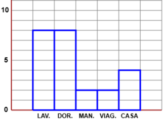 una certa persona passa la giornata nelle varie attività: lavorare, dormire, mangiare, viaggiare, fare lavori di casa. Ogni colonna indica approssimativamente le ore occupate in una determinata attività. Completa la rappresentazione tracciando la colonna che rappresenta il "dormire". | ![]() |