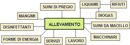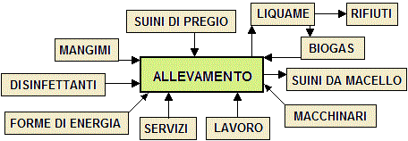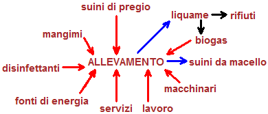 Una classe di alunni di ha fatto una visita ad una azienda che alleva suini. Con l'aiuto del personale della azienda ha rappresentato con lo schema seguente che cosa entra e che cosa esce dall'allevamento. Nel disegno non abbiamo messo le frecce. Mettile tu.