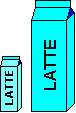 la figura a lato rappresenta il consumo di latte annuo di due diversi paesi, qual è, all'incirca, la percentuale del consumo di latte del primo paese (quello che consuma meno) rispetto al consumo del secondo paese? Il cartoccio grosso ha stessa forma e dimensioni (sia lato di base che altezza) circa doppie di quello piccolo. Poiché i volumi scalano cubicamente possiamo dedurre che il cartoccio maggiore ha volume pari a circa 2³=8 volte quello del minore. Ovvero quello minore ha capacità pari a circa 1/8 (ossia il 12.5%) di quello maggiore. | ![]() |