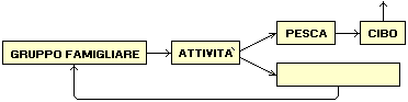 | Secondo voi, quali semplificazioni dovrebbero essere apportate al grafo del quesito precedente per ottenere una rappresentazione di come una famiglia di pinguini provvede al proprio mantenimento (nel caso dei pinguini le attività necessarie al mantenimento vengono gestite dai singoli gruppi famigliari, composti da coppia e piccoli, a differenza, ad esempio, di quanto accade per gli elefanti, che le gestiscono a livello di branco)? Per rispondere completate il grafo che segue (occorre far proseguire una freccia e mettere una opportuna scritta in un riquadro) e descrivete a parole le principali differenze rispetto al grafo precedente. | |
