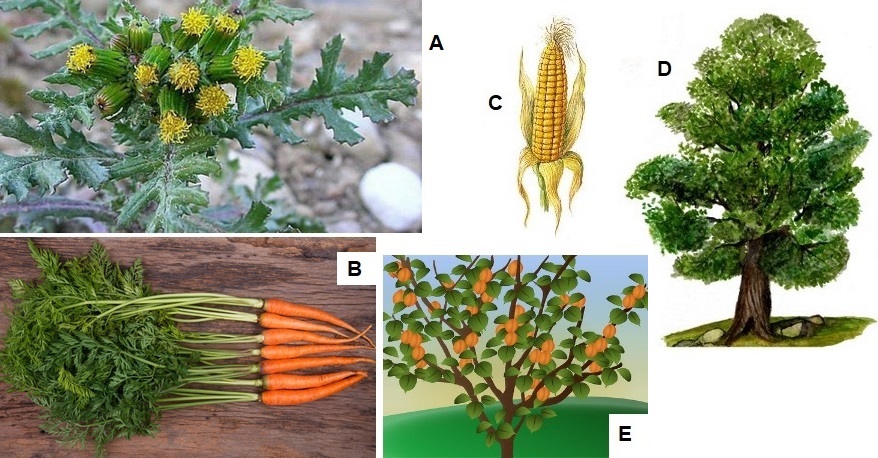 A lato sono raffigurate una pianta di senecio (comune ai margini delle strade o negli angoli dei giardini), alcune piante di carota, una di