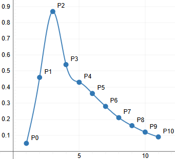 le y: 0,0.05, 0.46, 0.87, 0.54, 0.43, 0.36, 0.28, 0.21, 0.16, 0.12, 0.09,0