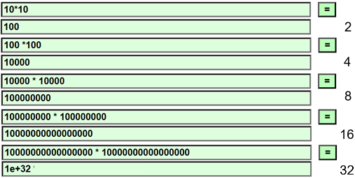 Prova ad eseguire con una calcolatrice 10×10, poi prendere il risultato (100) e fare 100×100, poi prendere il nuovo risultato (chiamiamolo R) e fare R×R, e così via, almeno una decina di volte. Che cosa ottieni alla fine?