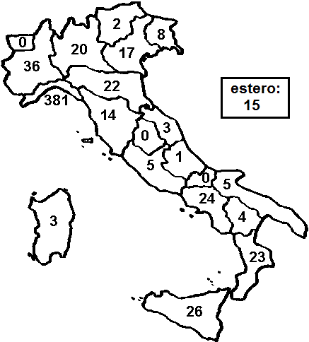 I. Settentrionale: Emilia-Romagna, Friuli-Venezia Giulia, Liguria, Lombardia, Piemonte, Trentino-Alto Adige, Valle d'Aosta e Veneto.