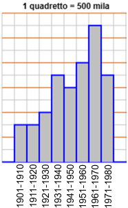 in vari decenni del secolo scorso. In quale decennio più italiani hanno cambiato la regione in cui abitavano? Quanti sono stati? Come mai, secondo te, tra il 1941 e il 1951, il numero degli italiani che hanno cambiato regione è stato minore rispetto a quelli del decennio precedente e a quelli del decennio successivo? Quanti sono, approssimativamente, gli italiani che hanno cambiato regione dopo il 1950 ed entro il 1980? |