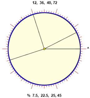 | Ad un corso di laurea sono iscritti studenti di 4 nazioni. La composizione percentuale delle varie nazionalità è rappresentata nel "grafico a torta" in figura. Si sa che i numeri degli iscritti provenienti da tre di queste nazioni sono 12, 36, 40 e che uno dei gruppi costituisce esattamente il 25% del totale. Quanti sono gli studenti del gruppo 4? |