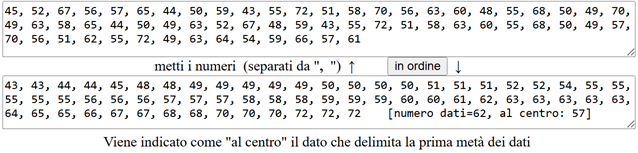 Con lo script "ordina/" posso facilmente ordinare i dati e trovare la mediana.
