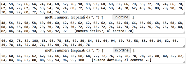 Posso ad esempio ordinare i dati relativi ai maschi e alle femmine, e trovare la mediana (dato al centro dei dati ordinati) per le femmine (78) è maggiore che per i maschi (70):