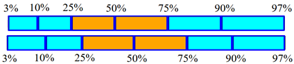 | 3° | 10° | 25° | 50° | 75° | 90° | 97° |