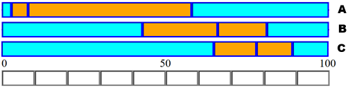 Le età mediane di morte, usando la scala rappresentata, possiamo stimarle, in ordine, in 8±1, 66±1 e 78±1 anni.