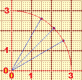 | Aiutandoti con la calcolatrice, trova le componenti dei vettori di modulo 3 e direzioni 30°, 45° e 60°. Quindi sul sistema di riferimento a fianco, senza servirti del goniometro, rappresenta questi tre vettori applicati all'origine (0,0). | ![]() |