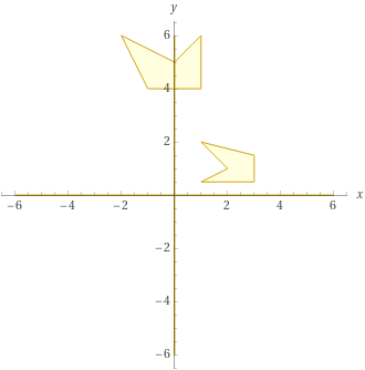 polygon (1,4),(1,2),(3,2),(4,4),(2,3); polygon (0,-3),(2,-3),(2,-1),(0,0),(1,-2)![]() | |||