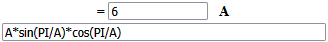 ![]() 3*sin(PI/3)*cos(PI/3) = 1.2990381056766582 6*sin(PI/6)*cos(PI/6) = 2.5980762113533156 12*sin(PI/12)*cos(PI/12) = 3 24*sin(PI/24)*cos(PI/24) = 3.1058285412302484 48*sin(PI/48)*cos(PI/48) = 3.1326286132812378 ... 6144*sin(PI/6144)*cos(PI/6144) = 3.141592105999271 12288*sin(PI/12288)*cos(PI/12288) = 3.141592516692157 | ![]() |