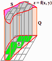 Se f è una funzione positiva di due variabili definita su una superficie piana T che è continua, ossia,