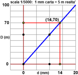 consideriamo due valori (d,D) da segnare sui due assi vicini a 14 e 70 ma più "comodi", come 10 e 50 [vedi la terza figura],