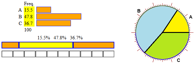 Le rappresentazioni grafiche presentate sopra possono essere realizzate con programmini online presenti qui. Ecco ad esempio che cosa si può ottenere usando "istogramma a barre", "istogramma a striscia", "areogramma" e "areogrammi":