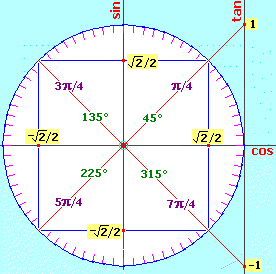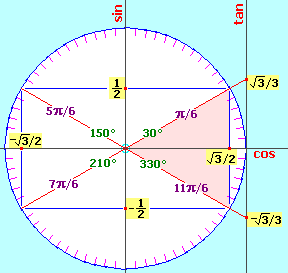 Queste figure riportano alcuni valori di seno (sull'asse verticale), coseno (sull'asse orizzontale)