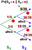 [ Pr(S2= | S1= ): probabilità che la seconda estratta sia nota l'informazione che la prima estratta è stata ] |