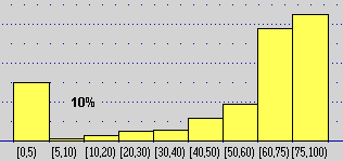 ![]() | Diagrammi a barre e istogrammi con basi uguali o diverse si possono realizzare facilmente con degli script: vedi. In quelli sottostanti il pallino giallo rappresenta il valor medio (59, 75, 81). | |