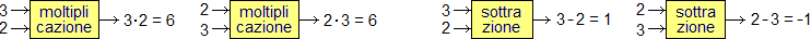 | Ma nel caso della sottrazione e della divisione a seconda dell'ordine in cui si mettono le frecce in ingresso può cambiare il risultato.