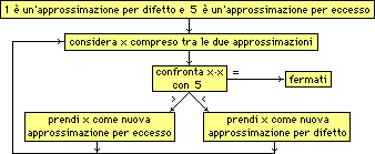 Come opera una calcolatrice tascabile quando premo [√x]? Una macchina non può procedere per tentativi "ragionati", cioè di volta in volta scegliere con qualche "ragionamento" il nuovo numero di cui provare a calcolare il quadrato. Deve seguire un procedimento meccanico, cioè un algoritmo in senso stretto, in cui lo sviluppo sia determinato in modo univoco, senza libere scelte come invece avveniva nel diagramma precedente.