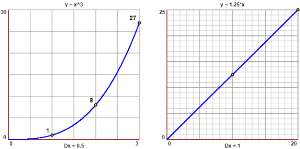 x → xx il cui grafico parzialmente tracciato a fianco) che
