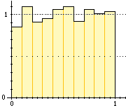 suddividendo [0,1) in 10 intervallini. Come altezze delle colonne sono state prese le densità di frequenza,