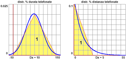 La ditta Sifanstat sa come approssimare gli istogrammi precedenti con delle curve che racchiudono con l'asse x un'area ampia 1, come nel caso del quadrato di base (0,1) e altezza 1 e il triangolo di base (0,2) e altezza 1 considerati sopra: